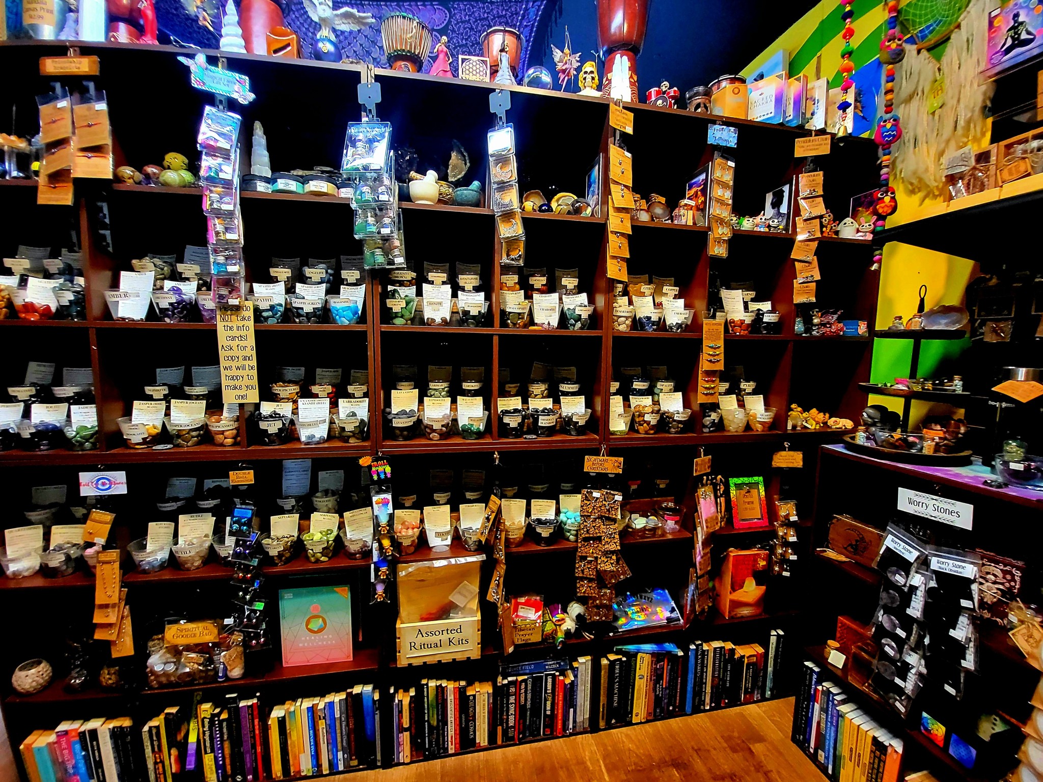 [bottom image: our metaphysical gift shop stuffed with crystals, sage, jewelry & more!]